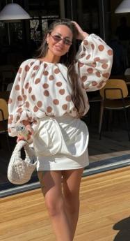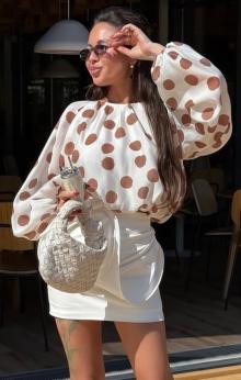 Очень интересная юбка, с акцентными деталями. И совершенно необыкновенная блузка. Ткань, принт,пошив, и конечно, сам крой - всё сложилось, чтобы получилась такая красота.