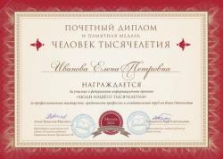 Награждена Памятной Медалью "Человек Тысячелетия"