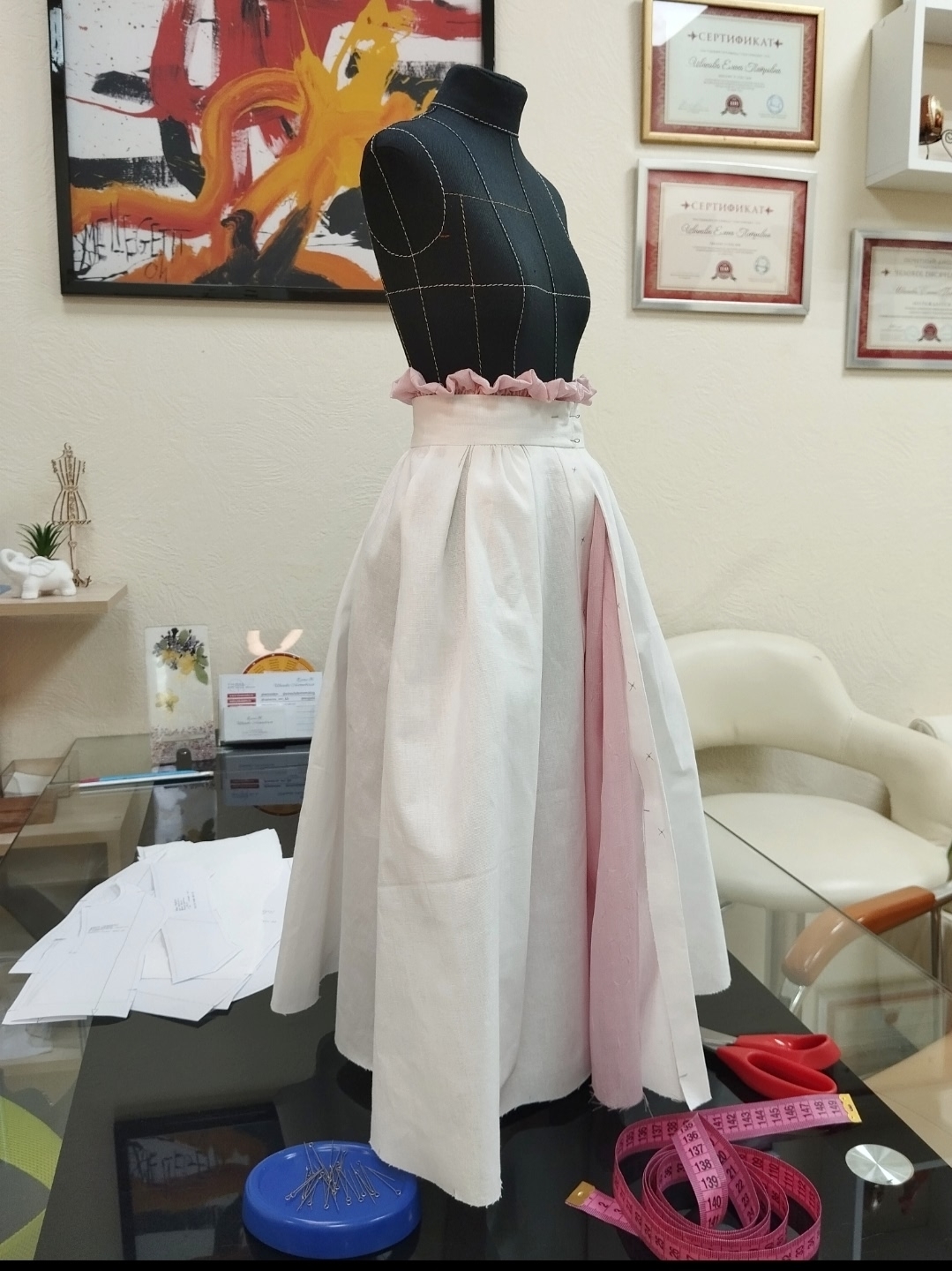 А на фото: наша Бетти. Макеты, отшитые по нашим же разработкам: юбка, подъюбник и жакетик. Подсказки в мелочах от Бетти уже понятны. Как и тот общий план, который понятен ещё больше.